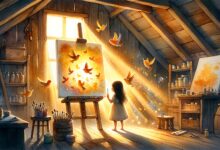 Az út hosszú volt és veszélyes egy ilyen apró egér számára. A fák árnyékai táncoltak, a szél suttogott a fák között, és minden gally roppanása ijesztőnek tűnt. De Müzli Brumi szomorú arcára gondolt, és ez erőt adott neki. A bátorság nem a méretben rejlik, hanem abban a nagy szívben, ami a barátságért dobog.