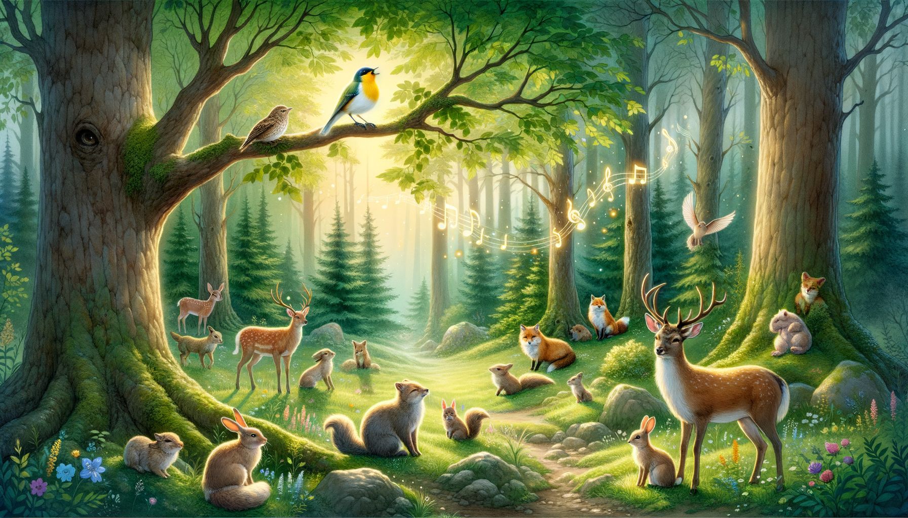 És ahogy a hangok összefonódtak, úgy fonódtak össze a szívek is. A tisztás megtelt a közös éneklés csodálatos harmóniájával. A madarak trilláztak, az őzek lágyan fújták a levegőt, a borzok mélyen dünnyögtek, és mindenki, aki csak élt és mozgott az erdőben, valahogy hozzátette a maga kis részét ehhez a csodálatos kórushoz. A Nap is mintha még fényesebben ragyogott volna, a virágok még élénkebben pompáztak, és a patak vize is vidámabban csobogott.
