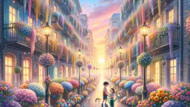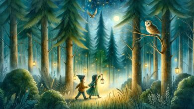 Ekkor, hirtelen, halk muzsika ütötte meg a fülét. Először csak egy távoli, alig hallható dallam volt, aztán egyre erősödött. Majd meglátott valamit. Apró, sárga, piros és kék fények táncoltak a távolban, lassan közeledve felé. Mici még sosem látott ilyet. Félt, de a kíváncsisága erősebb volt. Óvatosan, lépésről lépésre elindult a fények felé, a puha földön szinte hangtalanul. A szíve még mindig dobogott, de a félelem helyét lassan átvette a remény.