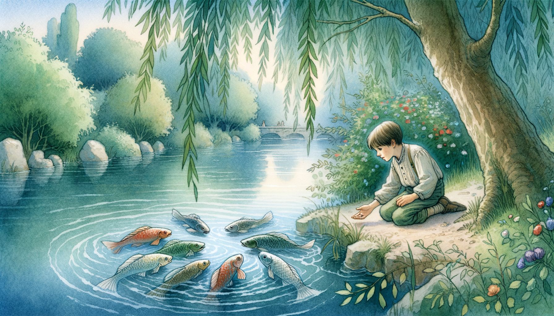 Máté továbbra is ott ült a fűzfa alatt, és hallgatta a folyó meséit. De most már nem félelemről és hiányról szóltak, hanem a bőségről, a békéről és a megértésről. És mindenki tudta, hogy a fiú, aki értett a halak nyelvén, valójában mindenki nyelvén értett: a szív nyelvén, amely képes meghallani a másik fájdalmát és örömét, és hidat építeni a legmélyebb szakadékok fölé is.