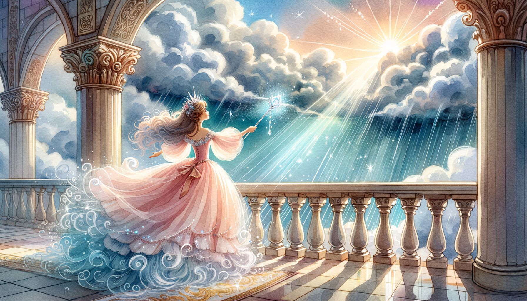 A hercegnő minden reggel, amikor felkelt, először a pálcájához nyúlt. Ha a virágok szomjaztak, egy könnyed suhintással lágy záport varázsolt. Ha a királyi kertészeknek napfényre volt szükségük, hogy a gyümölcsök megérjenek, Zora elhessegette a felhőket, és ragyogó napsütést rendelt. A királyságban mindig bőséges volt a termés, és az emberek boldogan éltek, hiszen az időjárás sosem okozott gondot.