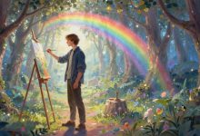 „Tudom, miért jöttél, Zora hercegnő” – mondta Felhőanyó lágyan, hangja olyan volt, mint a szél suttogása a fák között. „Azt hitted, parancsolhatsz a természetnek, ugye? Azt hitted, a pálcád mindenható.” Zora lehajtotta a fejét. „Én csak jót akartam… Azt hittem, segítek a népemnek, ha kézben tartom az időjárást.” Felhőanyó elmosolyodott. „A szándékod tiszta volt, gyermekem, de az utad téves. A felhőknek is van szívük. Éreznek, akárcsak te. Ha kényszeríted őket, dühösek lesznek, ha elhanyagolod, szomorúak. A vihar nem ellened fordult, csak kiabálni próbált veled. Hallgasd meg a szívét! A pálcád nem arra való, hogy parancsolj vele, hanem arra, hogy összekapcsolódj, hogy érezd, amit ők éreznek.” Felhőanyó kezet nyújtott, és Zora kezébe vette a pálcát. „Érezd a felhők szomorúságát, a szél haragját. Értsd meg, miért akarnak sírni, miért akarnak tombolni. Ne akard megállítani, hanem értsd meg az okát! Csak akkor tudod visszaállítani az egyensúlyt, ha meghallgatod, mit súgnak neked a felhők.”