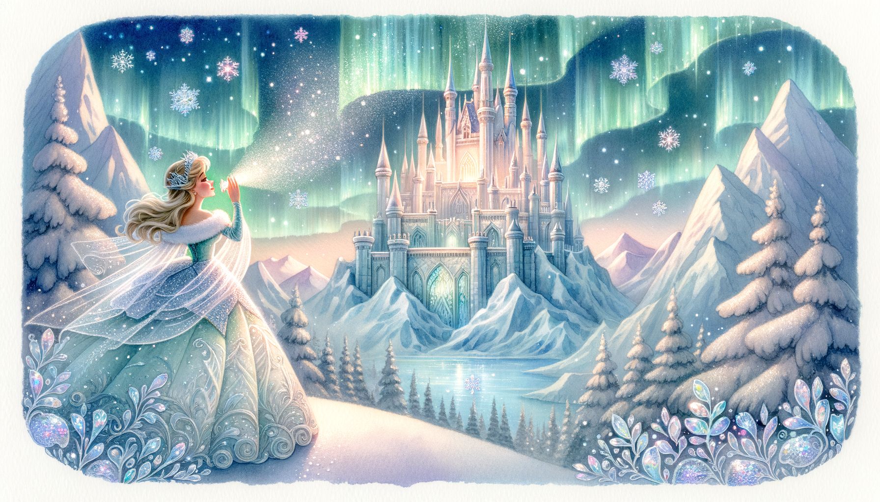 Egy téli reggelen, amikor a nap épp csak megfestette rózsaszínnel a horizontot, és a fagyos levegő kristályosan szikrázott, mintha apró gyémántpor lebegett volna a levegőben, furcsa dolog történt. A távoli jégpalota felől, mely a legmagasabb hegygerincen trónolt, és amelyről a pletykák szerint senki sem tudta, ki építette, vagy ki lakja, egy csodálatos dallam kezdett szárnyalni. Nem volt ez akármilyen dallam! Édes volt és lágy, mint a méz, mégis olyan erő lakozott benne, hogy még a földre hulló ezüstös hópelyhek is táncra perdültek tőle. Mintha minden egyes hópehely egy apró, légies balerina lett volna, úgy keringtek, forogtak a levegőben, finoman suhanva, mielőtt végleg megpihentek volna a földön, puha, selymes leplet terítve a tájra.