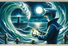Az út hosszú és fáradságos volt. A hó egyre mélyebb lett, bokáig, majd térdig ért, a szél pedig egyre metszőbben fújt, mintha apró jégtűkkel szurkálná az arcát. De Aria nem adta fel. Lépésről lépésre haladt, a dallam vezette, mint egy láthatatlan fonal. Ahogy közeledett a jégpalotához, a dallam egyre tisztábbá és erősebbé vált. Már nem csak a hópelyhek táncoltak, hanem a fák ágai is mintha ringatóztak volna a zene ritmusára, és még a jégcsapok is lágyan csilingeltek, mint parányi üvegharangok, mintegy kísérve a láthatatlan zenekart. A hercegnő végül elérte a palota hatalmas, áttetsző kapuját, amely úgy tündökölt, mintha ezer gyémántból faragták volna. A kapu előtt egy magas, jégből faragottnek tűnő alak állt őrt. Arca komoly volt, mint a fagyos tél, szemei pedig úgy ragyogtak, mint a téli éjszaka legfényesebb csillagai.