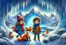 Beléptek a lyukon, és rögtön egy csillogó világba értek. A falakat jégcsapok díszítették, és a levegő tele volt gyönyörű, csillogó hópelyhekkel, amik a barlang falain tükröződtek. Fejüket forgatták, miközben felfedezték a jégcsodákat, amelyek a barlangban sorakoztak.