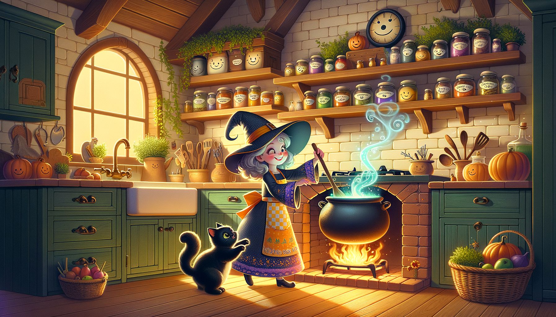 Az Ezüstpatak partján, ahol a fűzfák a víz fölé hajoltak, mintha csak a saját tükörképüket fésülgetnék, állt egy apró, mohos tetejű kunyhó. Nem volt ez akármilyen házikó. Kéményéből nem szürke füst, hanem hol ibolyakék, hol pitypangsárga, hol pedig szivárványszínű pamacsok szálltak az ég felé. Ebben a kunyhóban élt Jolán, a jóságos boszorkány.