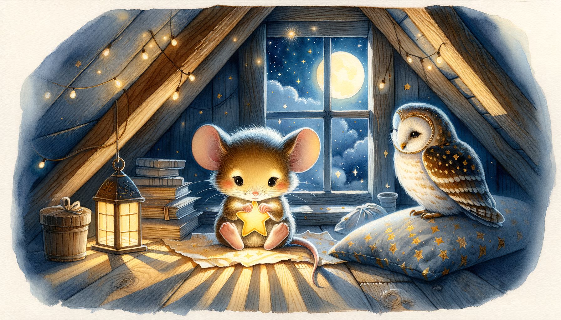 Bagoly bácsi lassan elfordította fejét, és tekintete megállapodott az apró pároson. – Ho-hóóó! Látom, látom. Egy egér, és egy… egy leesett csillag. Ritka látvány, mondhatom. Mi járatban vagytok, kicsikéim?