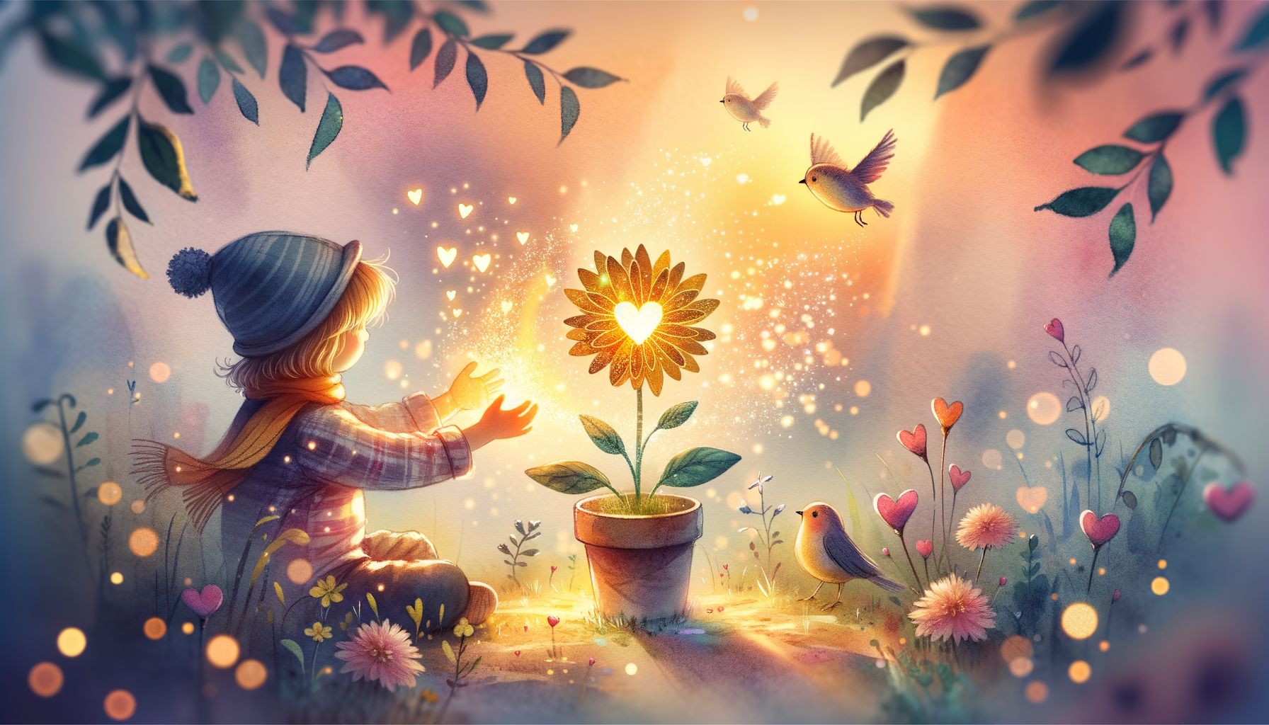 Kertész néni mindig mosolyogva figyelte, ahogy Bence egyre érettebbé és figyelmesebbé válik. – A Kívánságvirág nem csak a kívánságokat teljesíti – mondta egyszer Bencének –, hanem a szíveket is megnyitja. Megmutatja az embereknek, hogy a legnagyobb varázslat nem a tárgyakban rejlik, hanem abban a szeretetben és törődésben, amit másoknak adhatunk.