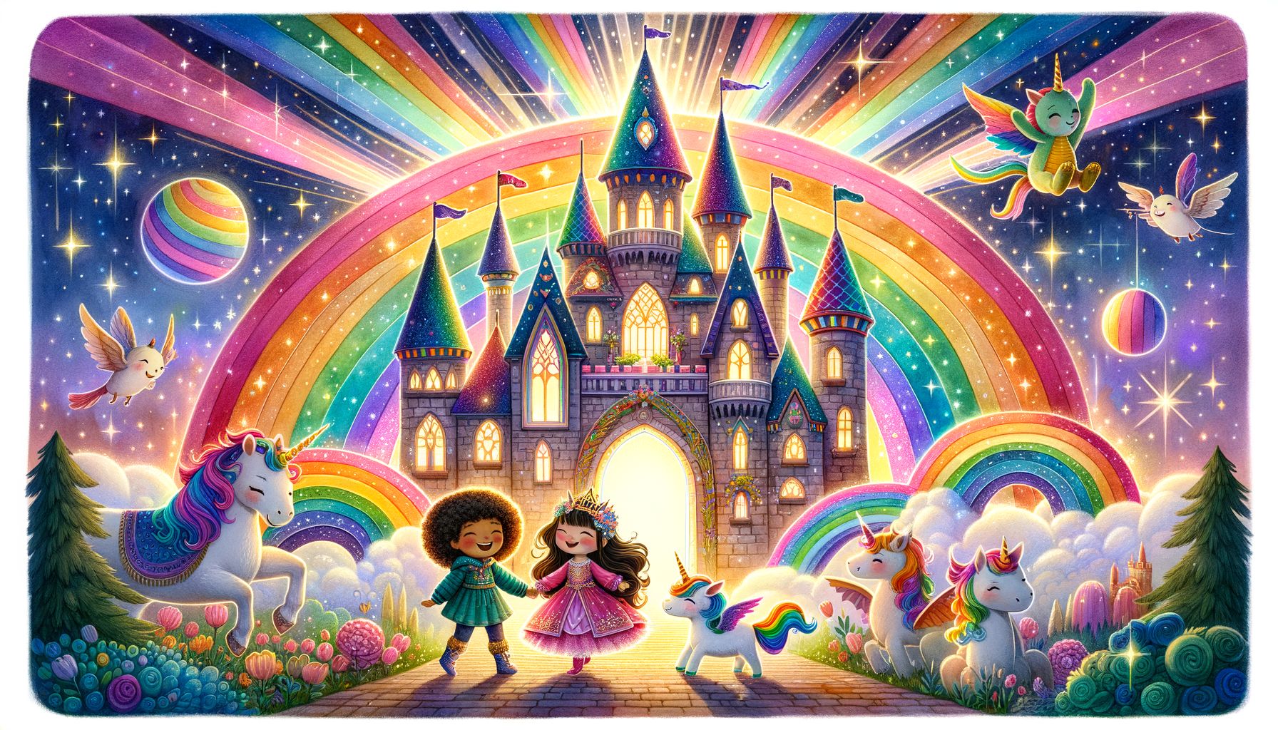 „Szivárványvár? Fény? Játék?” – Fényhab szeme felcsillant. „Megyek! Megmutatom nekik, hogyan kell ragyogni!”