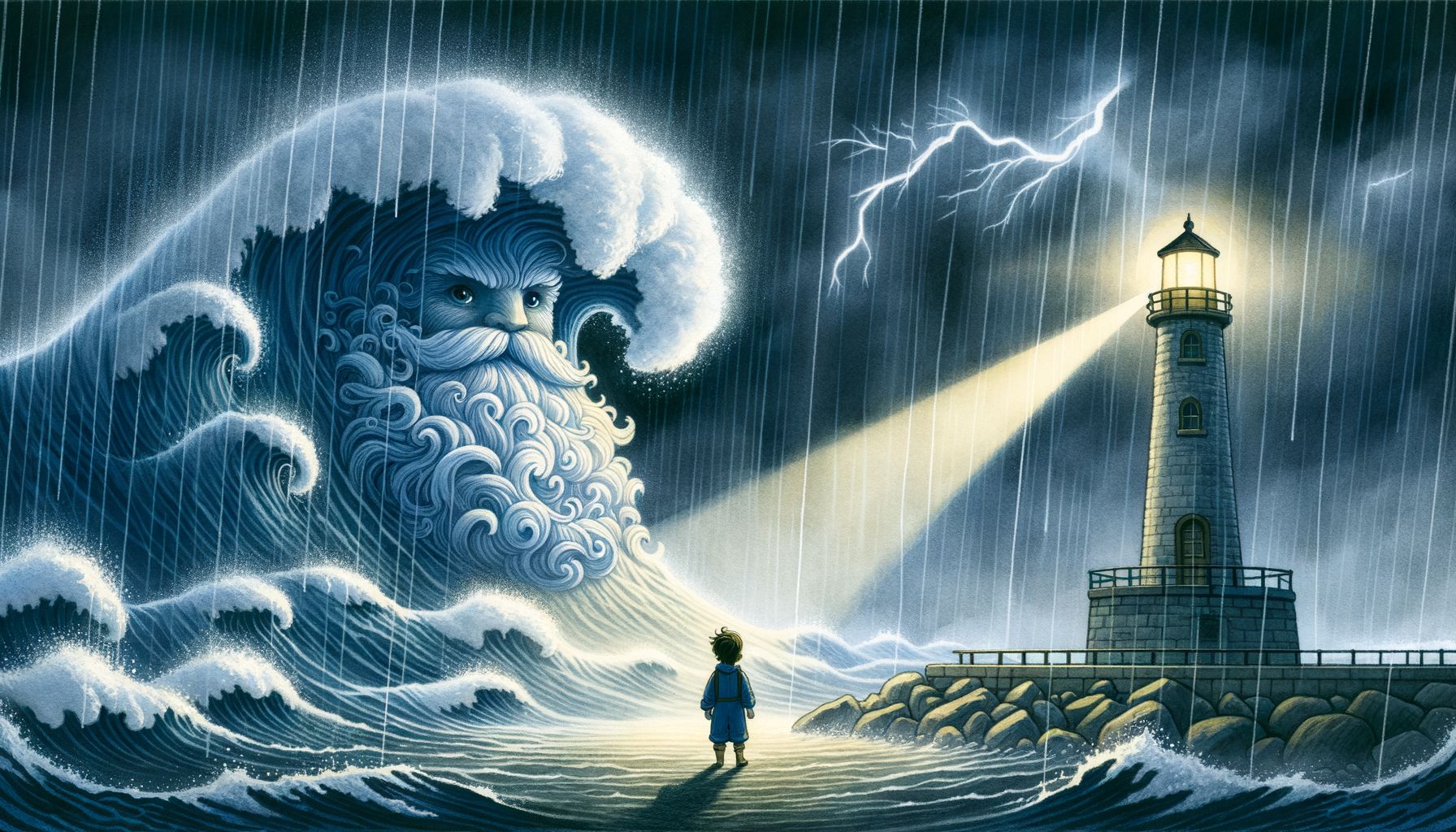 Egy napon a horizonton sötét, ólmos felhők gyülekeztek, mintha az ég maga roskadt volna a tengerre. Eleinte csak apró fodrok jelentek meg a vízen, aztán a szél feltámadt, és a hullámok egyre nagyobbak lettek. A halászok sietve húzták partra csónakjaikat, a kikötőben a hajók köteleit megerősítették. Levi a toronyban érezte, ahogy a vastag falak is megremegnek a vihar erejétől. A villámok cikáztak az égen, a dörgés belehasított a fülbe, és a tenger dübörgése már-már ijesztő volt. A szél süvített, mint egy dühös szellem, és a hullámok – melyek eddig csak játékosan nyaldosták a partot – most hatalmas, tajtékzó szörnyetegekké változtak, amelyek falatozni akarták a szárazföldet. Ez nem egy egyszerű vihar volt, ezt érezte Levi. Mintha maga a tenger haragudott volna meg.