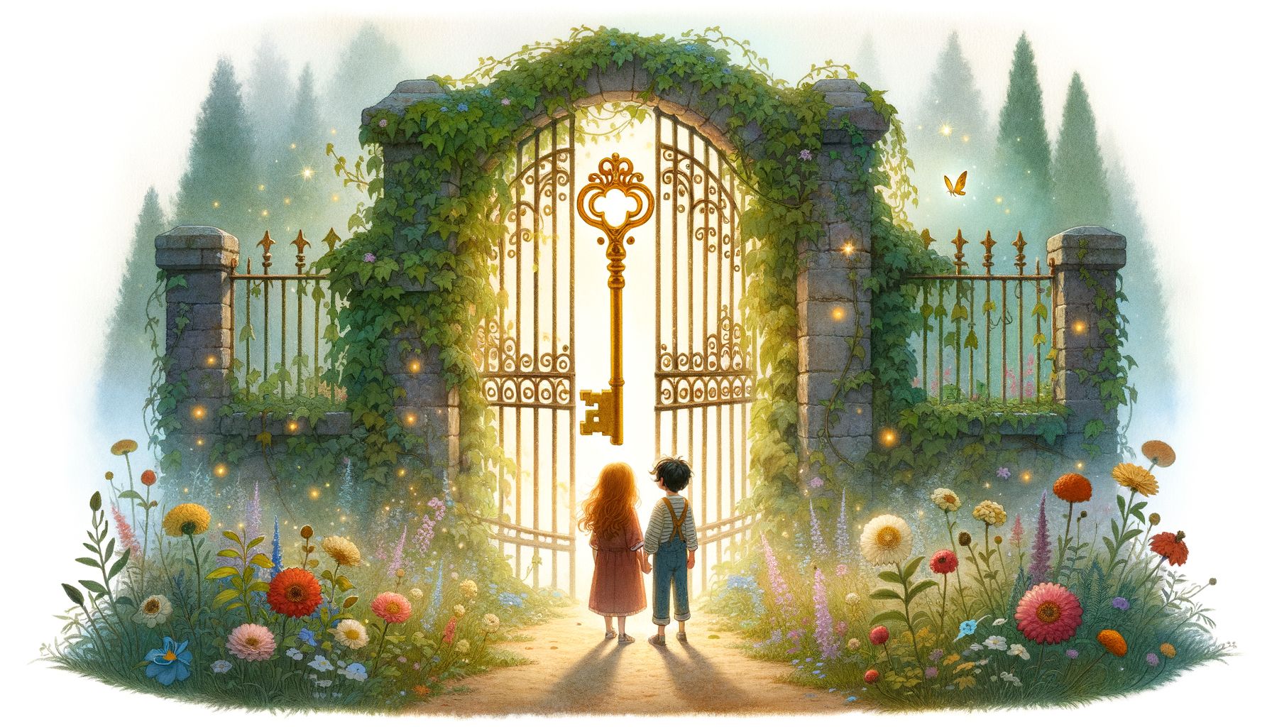A gyerekek a kulccsal a kezükben indultak el a kertbe. Hol lehet egy ilyen titokzatos kert? A nagyi kertje hatalmas volt, tele virágokkal, gyümölcsfákkal és sűrű bokrokkal. Felfedeztek már minden zugot, vagy legalábbis azt hitték. Keresgéltek a virágágyások között, a lugas alatt, a veteményes sarkában, de sehol sem találtak olyan kaput, amelyhez ez a különleges kulcs illene.