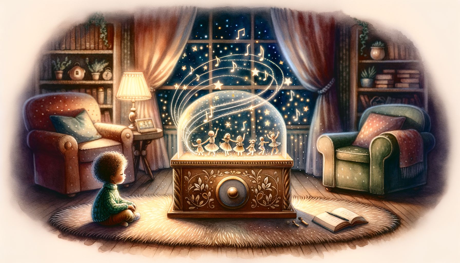 Lilla szobája minden este, ahogy a nap utolsó sugarai leereszkedtek a dombok mögé, mesebeli hellyé változott. Nem a bútorok vagy a falak színe miatt, hanem egy különleges varázslat okán, ami Nagypapa öreg, fából faragott zenélődobozából áradt. A doboz, melynek tetejét apró, táncoló tündérek és csillogó virágok díszítették, Nagypapa szívének legkedvesebb kincse volt, és most már Lilla is beleszeretett a titkaiba.