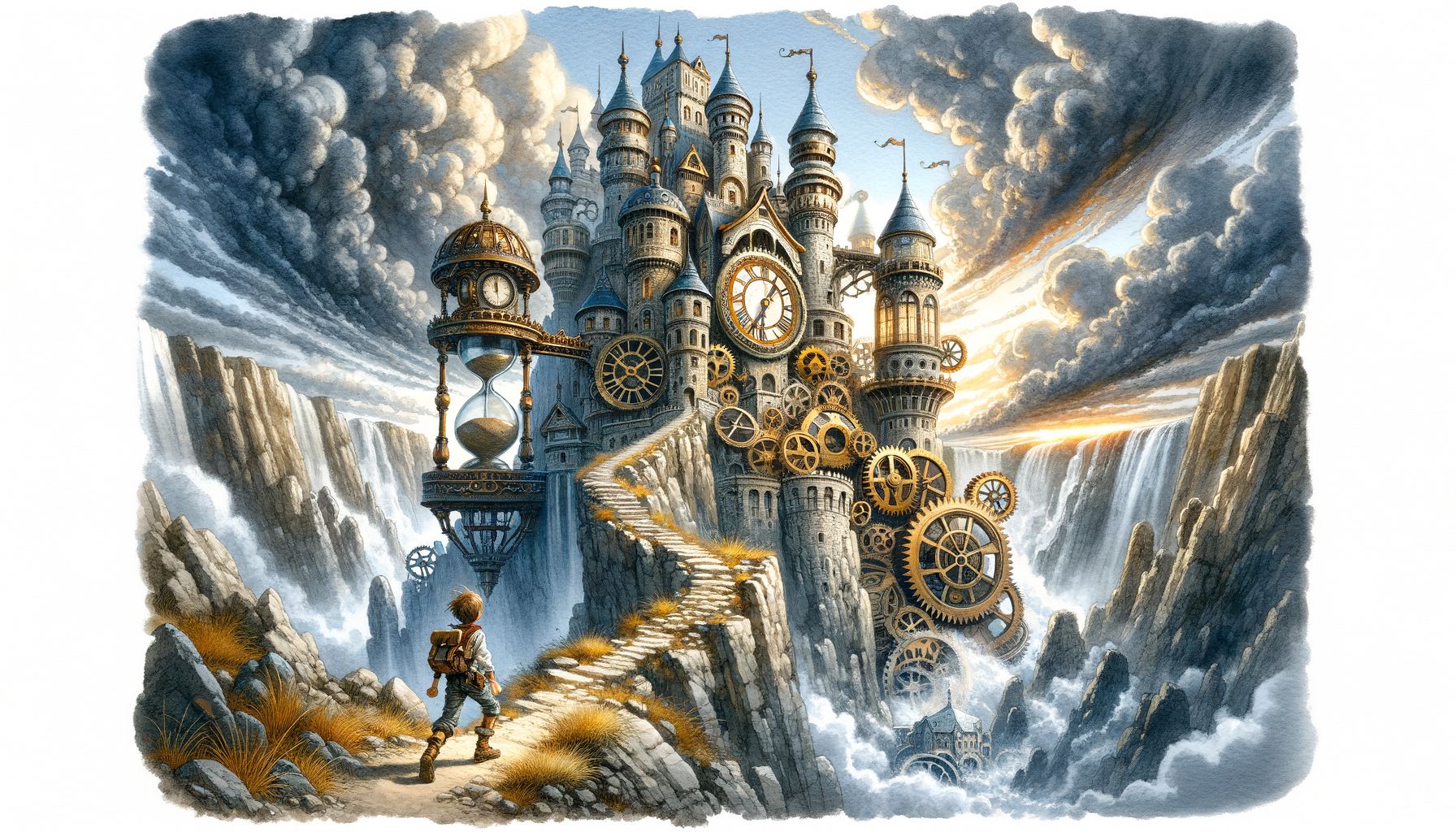 A vár kapuja nehéz tölgyfából készült, és apró, csillogó, homokórákat formázó díszek borították. Ármin bátorságot vett, és bekopogott. A kapu lassan, nyikorgó hangon feltárult, és egy magas, viszont szelíd tekintetű öregember állt előtte. A szakálla olyan volt, mint a hóval borított hegycsúcs, a szeme pedig, mintha ezeréves órák ketyegését rejtené. Ő volt Az Idő Őrzője.