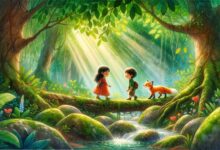 „Hé, Csiribiri, mi ez?” – kiáltott fel Áron hirtelen, és felemelte a cica fejét, hogy jobban lássa a nyakában lévő homokórát. Ekkor vette észre! A bokor mellett, pontosan ott, ahol Áron percekkel ezelőtt már kereste, egy apró, ezüst csillogás látszott a fűben. A csengő! Nem volt elrejtve, nem volt messze, csak éppen egy fűcsomó takarta el a szemük elől.