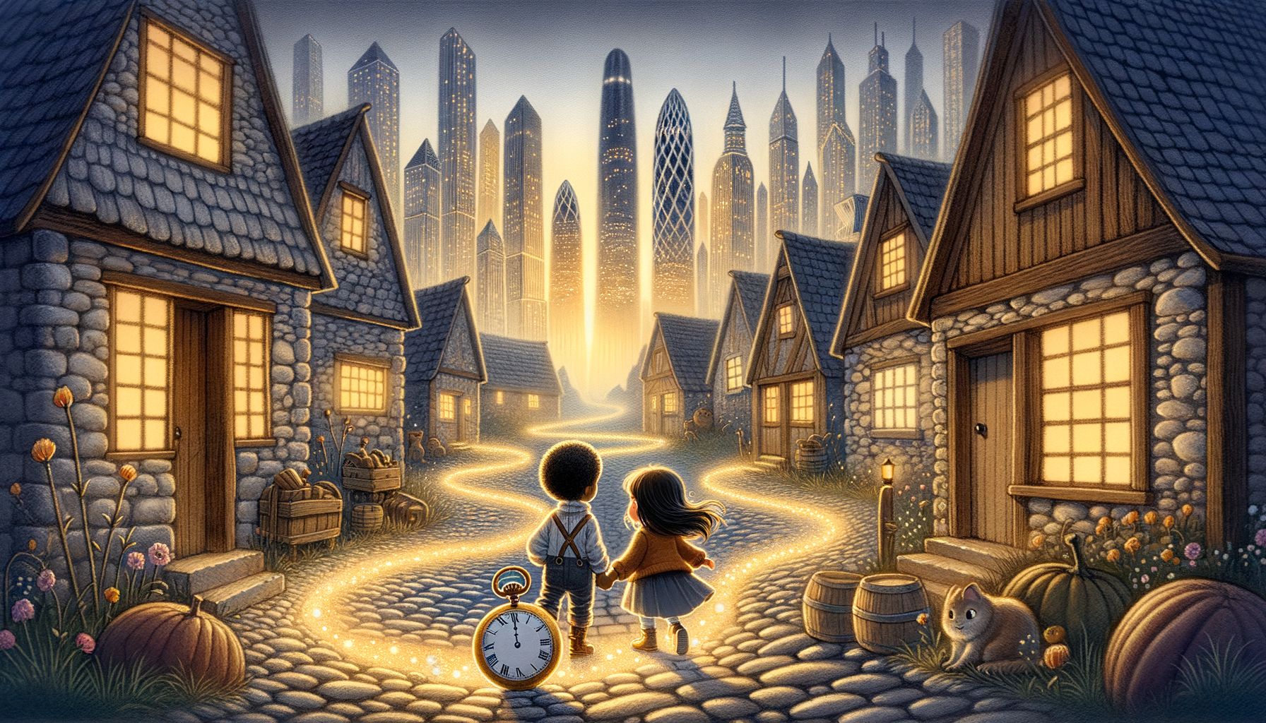 „Követnetek kell őt!” – mondta az Öreg Óramester, miközben egy térképet tolt eléjük, amin furcsa, örvénylő vonalak voltak. „Ezek az időnyomok vezetnek majd. A zsebóra megmutatja az utat. De vigyázzatok! Az időutazás nem játék. A múltban és a jövőben is veszélyek leselkedhetnek. Csak a bátorság és a barátság vezethet át a legkülönösebb időkanyarokon is.”