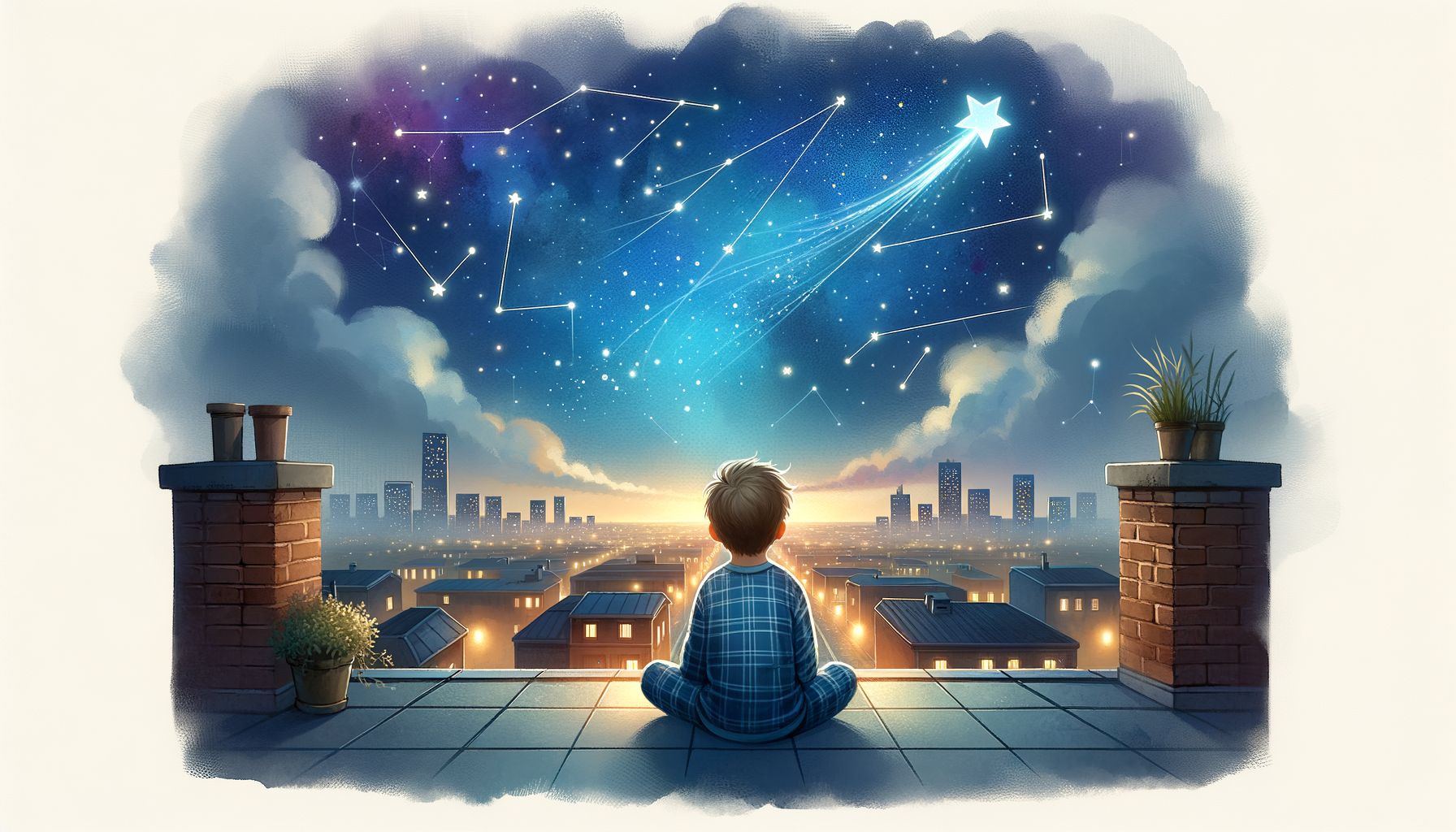 Félix, a csillagleső fiú, imádta az estéket. Nem a tévé előtt, mesterséges fényben, hanem odakint, a szabad ég alatt, ahol a sötétség ezernyi apró gyémánttal volt hintve. Számára a tető volt a világ közepe, a legmagasabb pont a házon, ahonnan az univerzum hatalmas, fekete takarója a legszebben terült el. Nagypapa, a mesélő, aki minden este új történetet tudott varázsolni a semmiből, tanította meg Félixnek, hogy minden csillag egy történet, és minden csillagkép egy mesekönyv lapja. „Csak tudni kell olvasni őket, kisfiam,” mondta Nagypapa, miközben meleg teát töltött Félix bögréjébe.