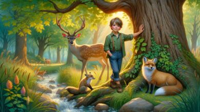 Elindult az erdő széle felé, ahol a csend a legmélyebb volt. Ahogy belépett a fák árnyékába, egy halk szipogásra lett figyelmes. Egy bokor alatt egy fiatal őzike kuporgott, nagy, barna szemei tele voltak könnyel. Hosszú szempillái megremegtek, ahogy felnézett Hellára.