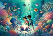 Így hát útra keltek. Csillag vezette az utat, fürgén úszott a korallok között, Móni pedig Nila kezét fogta, és óvatosan úszott utána, a lány már egészen megszokta a víz alatti légzést. Nila már nem volt olyan félénk, mint az elején, érezte, hogy Móni és Csillag igaz barátok. Hamarosan egy mélyebb, sötétebb részhez értek, ahol a napfény már alig pislákolt. Ekkor, a távolban, egy apró, de annál fényesebb pont jelent meg. Az volt Bálint, a világítóhal.