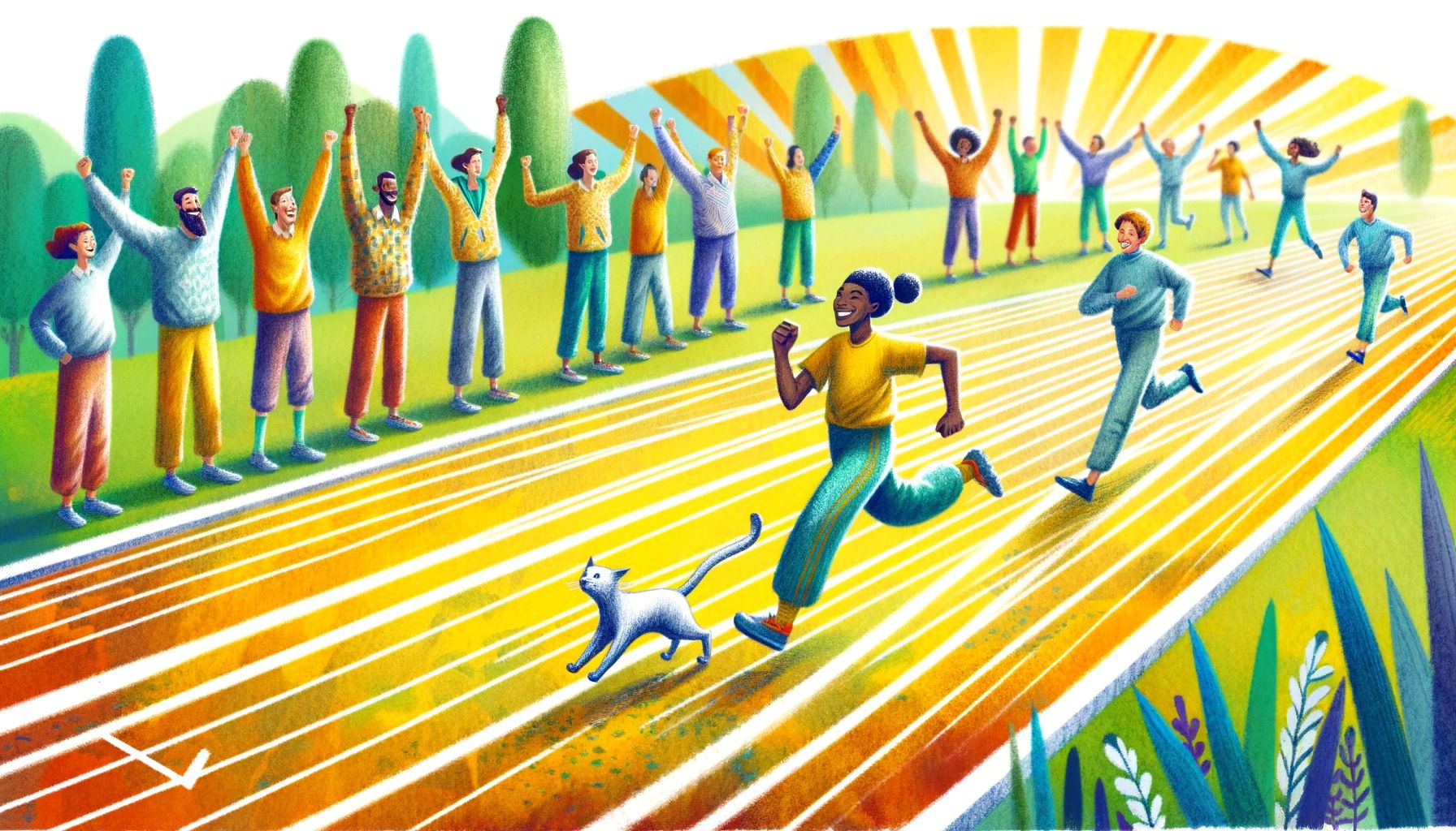 – Látod? – súgta Máté. – Ő sem azon gondolkodik, hogy a leggyorsabb cica-e a parkban. Csak fut és játszik, mert élvezi!