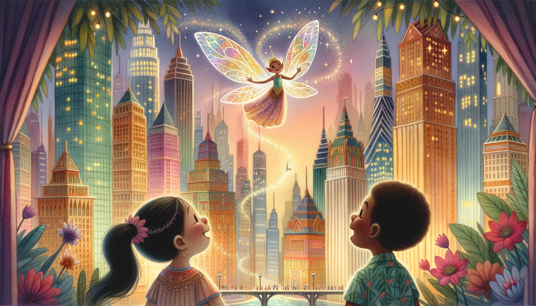 Volt egyszer, hol nem volt, egy olyan város, ahol a felhőkarcolók az égig értek, mint megannyi csillogó üvegpalota. Napfényben szikráztak, este pedig ezer fénnyel világítottak. Ebben a rohanó, zajos, mégis varázslatos városban élt Tündérszellő, a városi tündér. Apró, szivárványszínű szárnyai úgy repítették a szélben, mintha csak egy levegőnél könnyebb porszem lenne. Senki sem vette észre, hiszen a városlakók annyira siettek.