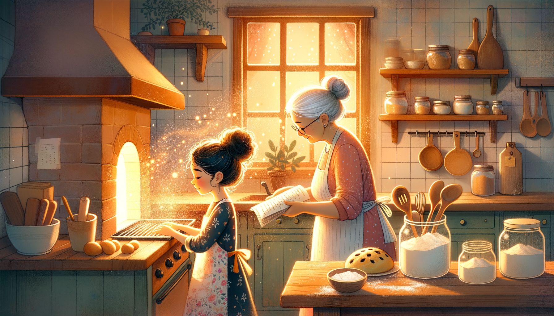 A házikóban lakott még a Nagyi is, aki egy kényelmes hintaszékben üldögélve, mosolygós szemmel figyelte unokája szorgoskodását. Nagyi volt a család receptjeinek őrzője. A polcon egy megsárgult lapú, bőrbe kötött könyv sorakozott a többi szakácskönyv mellett, de ez a könyv más volt, mint a többi. Ez volt a család féltve őrzött kincse, benne generációk tudásával és szeretetével.
